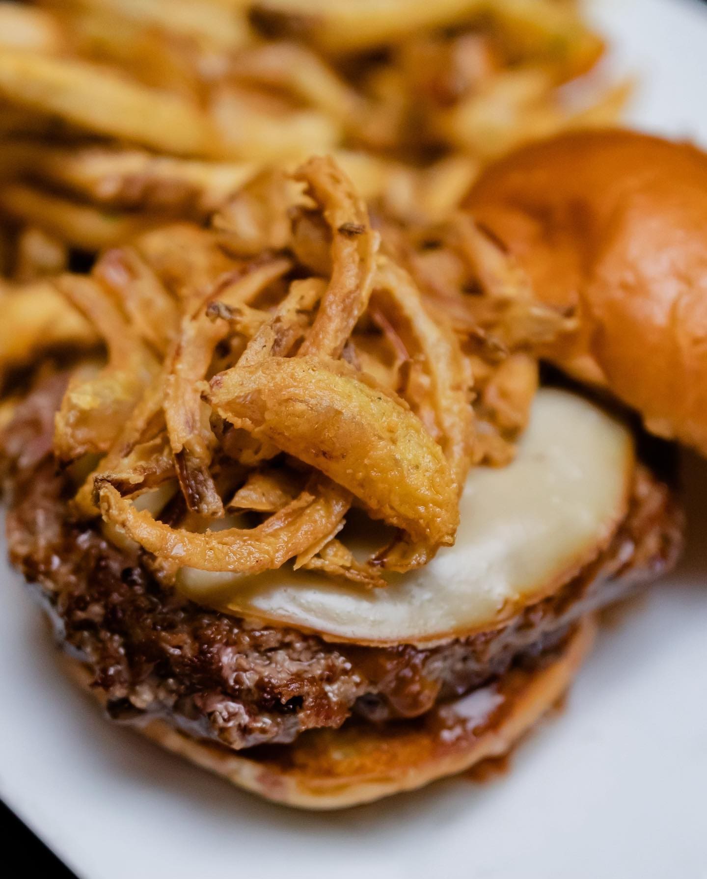 Homage to our friends at Smuttynose and our most famous burger from 2014-2019, 8oz hand formed joes meat shoppe patty, sliced smoked gouda, smuttynose bbq sauce, fried onion strips, served with house cut fries
