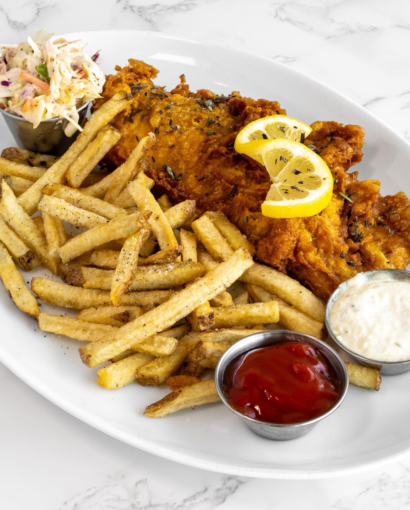 *Our famous Allagash White beer battered • Atlantic line caught haddock • pickled ginger tartar • lemon • cajun slaw • frites