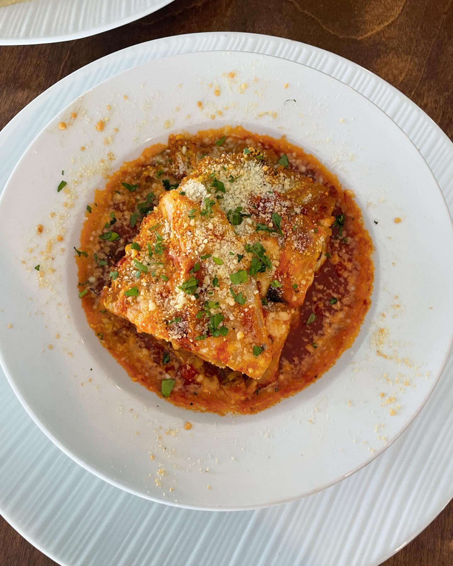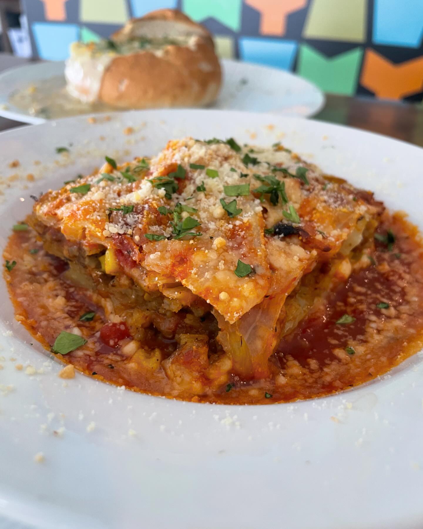 baked pork and vegetable lasagna with house marinara